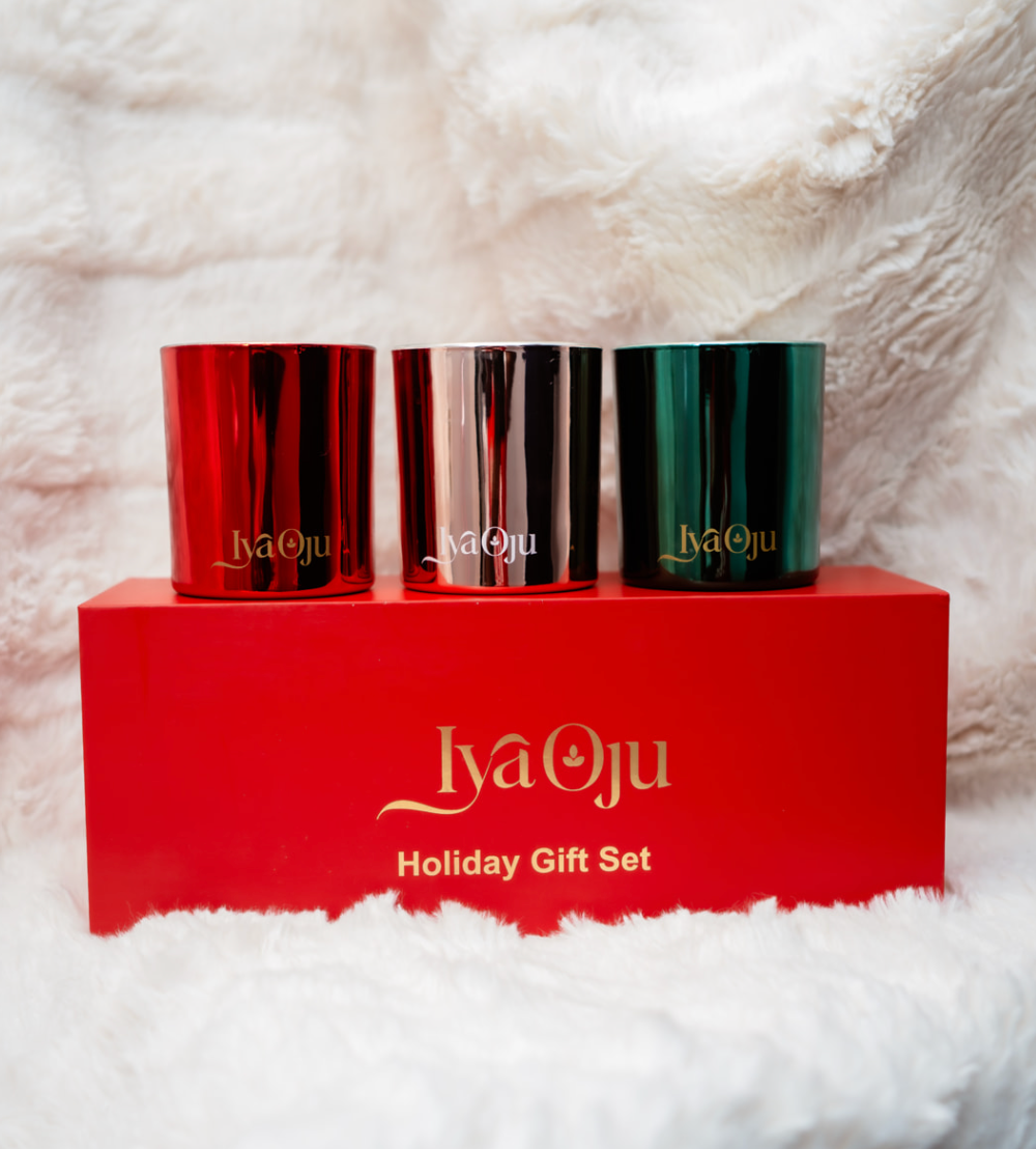 The Glow, Rosé, and Revel Trio includes three of our limited edition Holiday Candles!